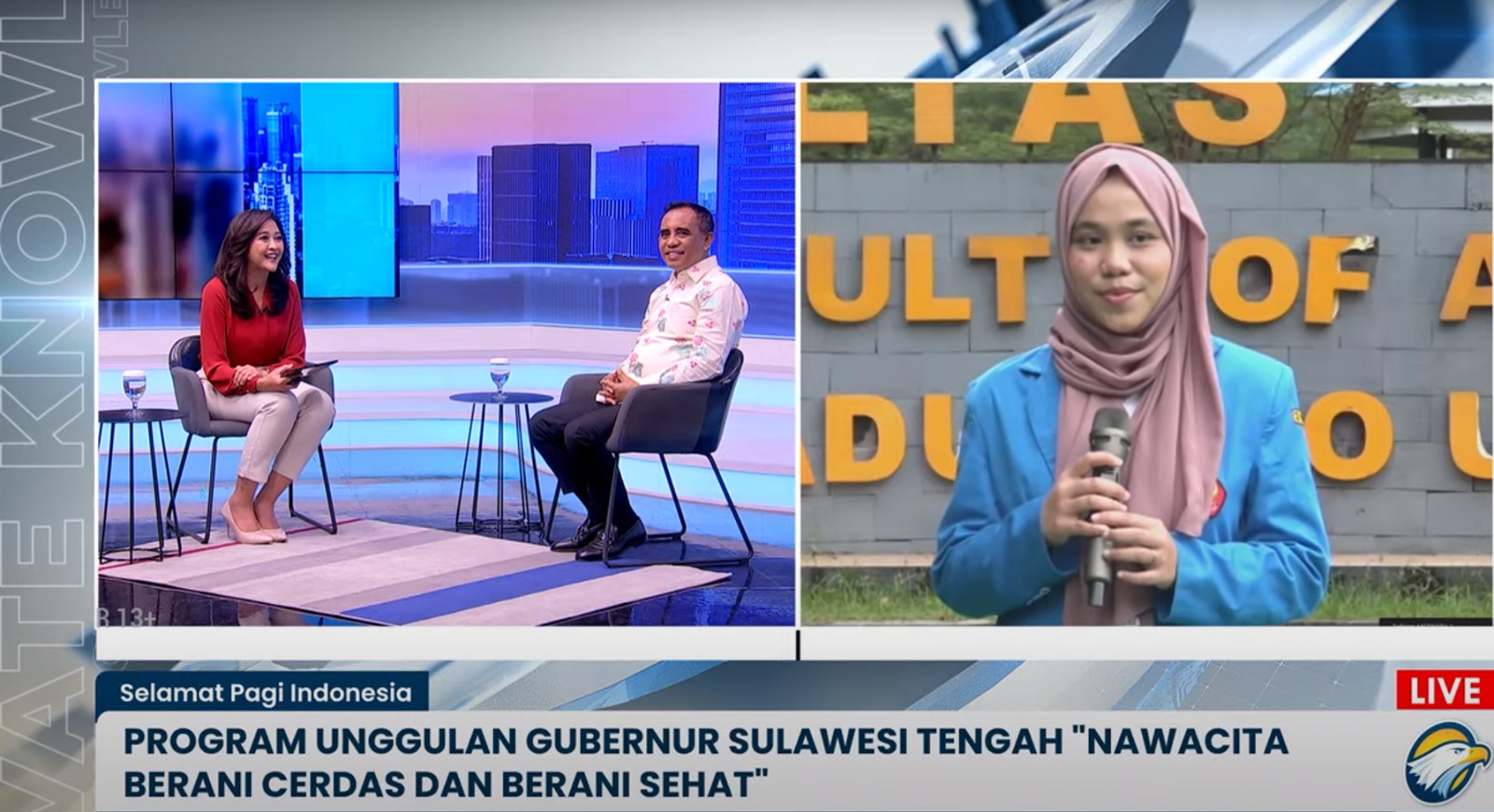 Dalam tayangan itu, disiarkan pula testimoni Salsa, mahasiswa Universitas Tadulako, penerima manfaat BERANI Cerdas.