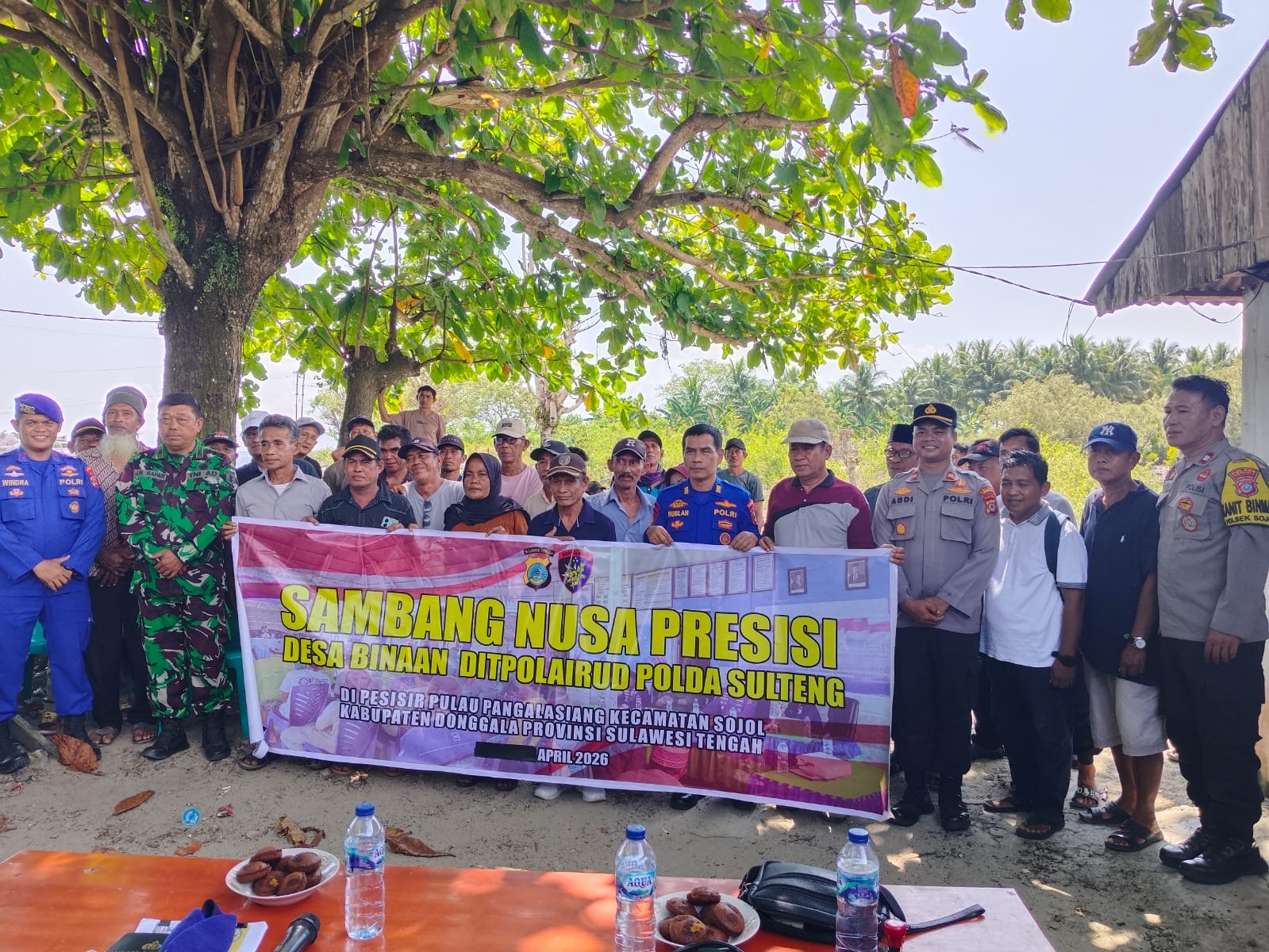 Kegiatan yang berlangsung sejak pukul 08.30 Wita tersebut dihadiri jajaran Dit Polairud, Danramil, Kapolsek Sojol, Kepala Desa Pangalasiang, serta masyarakat setempat.