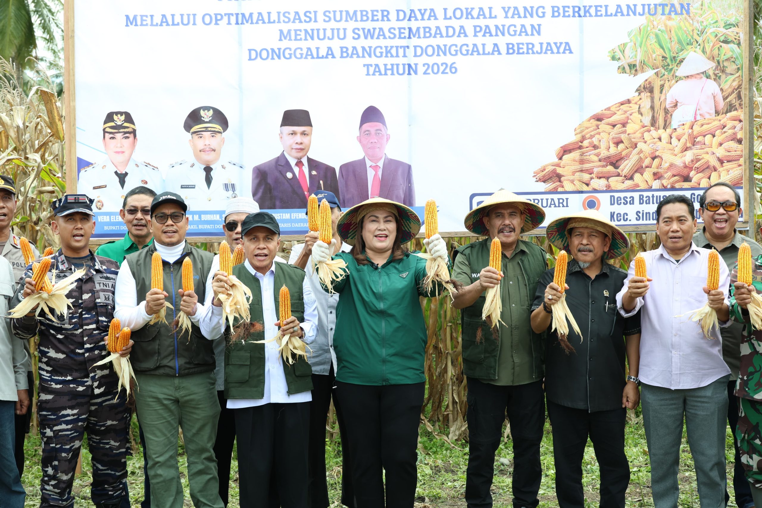 DONGGALA – Inovasi budidaya jagung di bawah naungan pohon kelapa membuahkan hasil. Panen raya jagung hibrida dengan produktivitas hingga 7 ton per hektare digelar di Desa Batusuya Go’o dan dihadiri Bupati Donggala, Vera Elena Laruni, Rabu (25/2/2026).