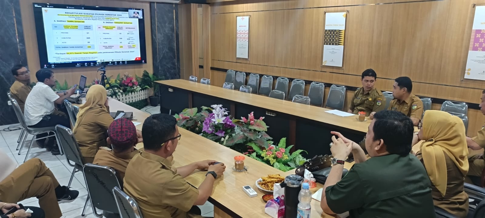 Wali Kota Palu diwakili oleh Sekretaris Daerah (Sekda) Kota Palu, Irmayanti, S.Sos., M.M., yang mengikuti rapat dari ruang rapat Bappeda Kota Palu. Turut hadir Ketua DPRD Kota Palu Rico AT Djanggola, Asisten Pemerintahan dan Kesra Setda Kota Palu H. Usman, S.H., Plt. Asisten II Rahmat Mustafa, Asisten III Imran Lataha, S.E., Kabag Umum, Kabag Prokopim Hj. Fatimah Hatta, serta sejumlah pejabat lainnya.