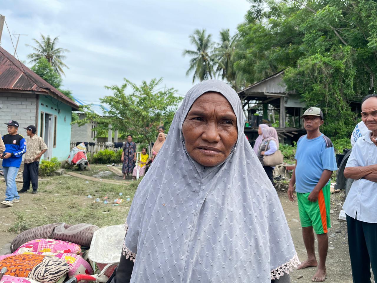 “Tidak ada yang tersisa, tidak ada barang yang anakku sempat selamatkan. Kesana semua alat dapur, kasur, bantal. Sudah di laut, tidak ada yang tinggal, tinggal baju di badan,” tutur Tini lirih.